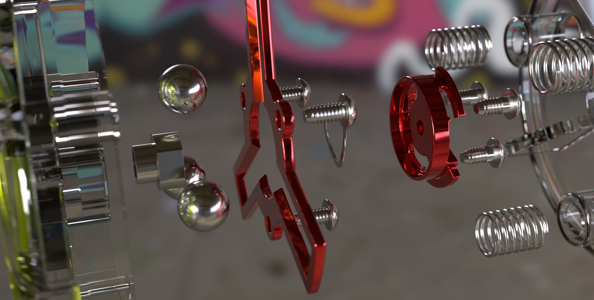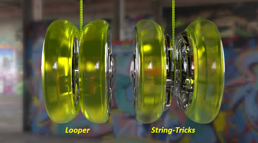 Mainstream yoyos come primarily in two body styles: the smaller “looping” style for fast out-n-back tricks; and larger “string-trick” bodies for landing and intertwining the yoyo on its own string. The YoYoFactory ‘ShapeShift’ gives user’s the ability to morph between each style of play using a simple key. Additionally, by placing each hub in neutral, the yoyo can apply its centrifugal forces on the internal bearings to extend spin time (known as sleeping; which is a key function for string tricks). IdeaWorks worked closely with YYF’s in-house design team to render and animate the functional states where traditional photography faced practical limits.